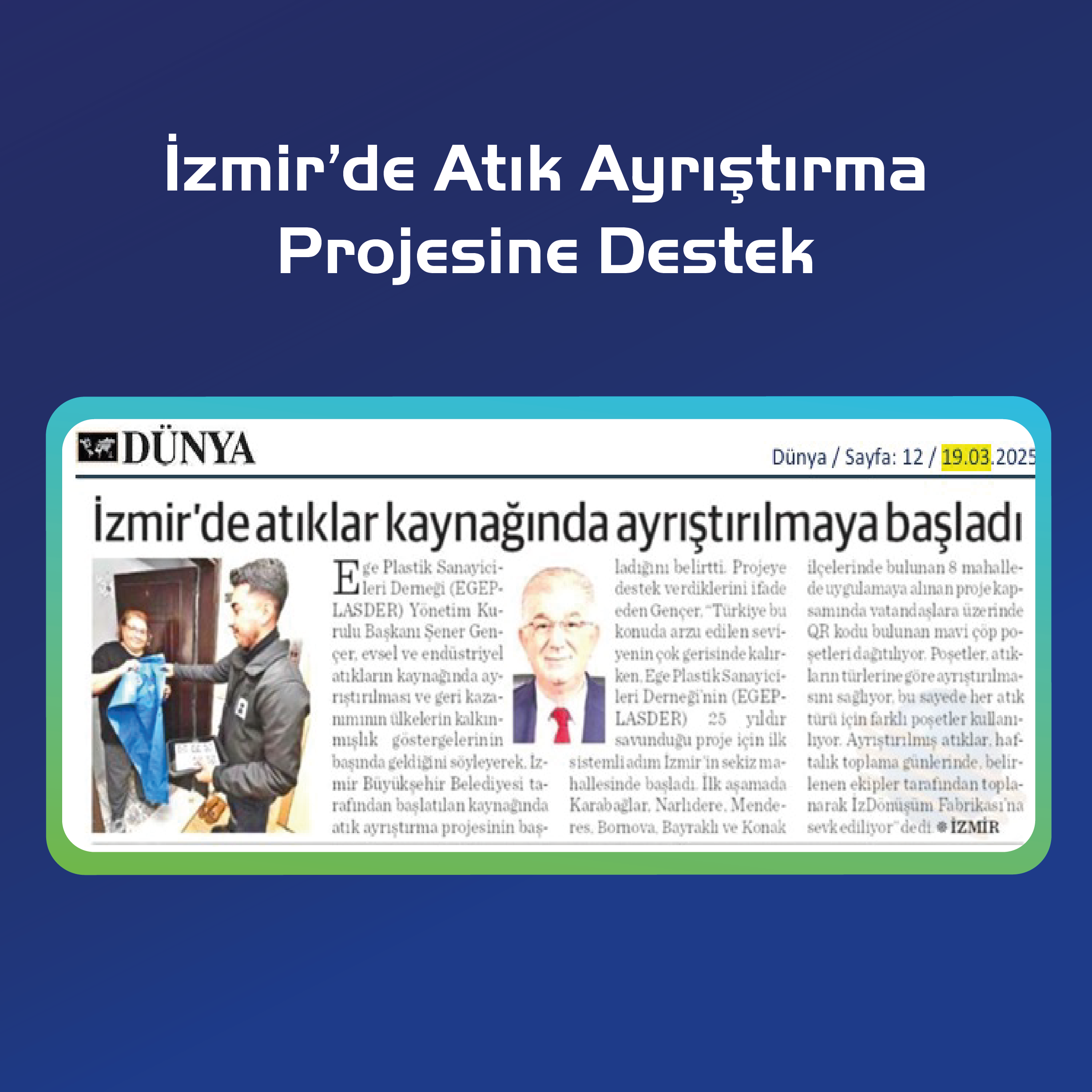 EGEPLASDER supported the waste separation project launched in Izmir, and Şener Gençer emphasized the importance of the initiative.